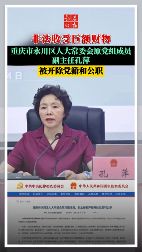 非法收受巨額財物,重慶市永川區人大常委會原黨組成員、副主任孔萍,被開除黨籍和公職