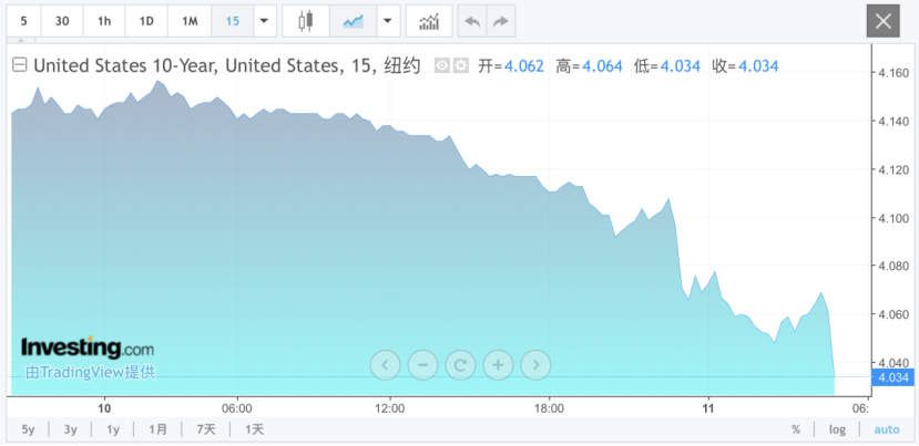 美東時間10月10日,買盤在整個交易時段持續涌入美國國債市場,美國5年期國債收益率一度下跌10個基點,美國10年期國債收益率下挫11.8個基點,報4.034%;美國30年期國債收益率下跌9.4個基點至4.639%。