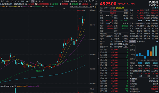 今日(10月16日),在韓國股票市場上,芯片股集體爆發,SK海力士大漲超7%,三星電子漲近3%,雙雙刷新歷史新高。韓國綜合指數漲超2%,站上3700點關口,再創新高。