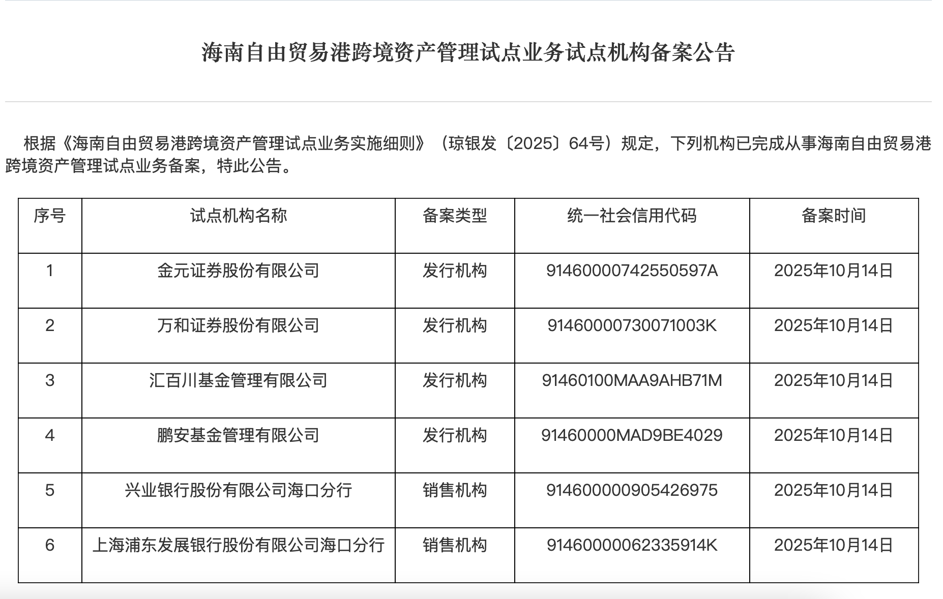 這是自8月21日《海南自由貿(mào)易港跨境資產(chǎn)管理試點業(yè)務(wù)實施細則》(下稱《實施細則》)正式實施后,首批公布的跨境資產(chǎn)管理試點業(yè)務(wù)試點機構(gòu),標(biāo)志著這一試點進入實質(zhì)性落地階段。