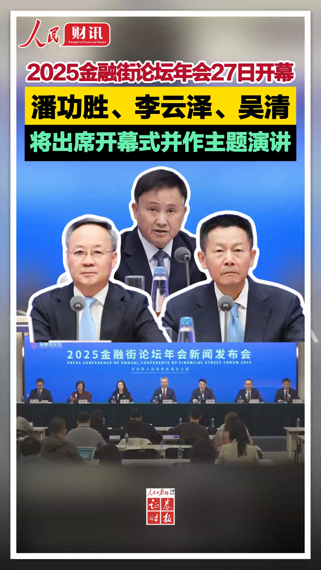 2025金融街論壇年會27日開幕,潘功勝、李云澤、吳清將出席開幕式并作主題演講