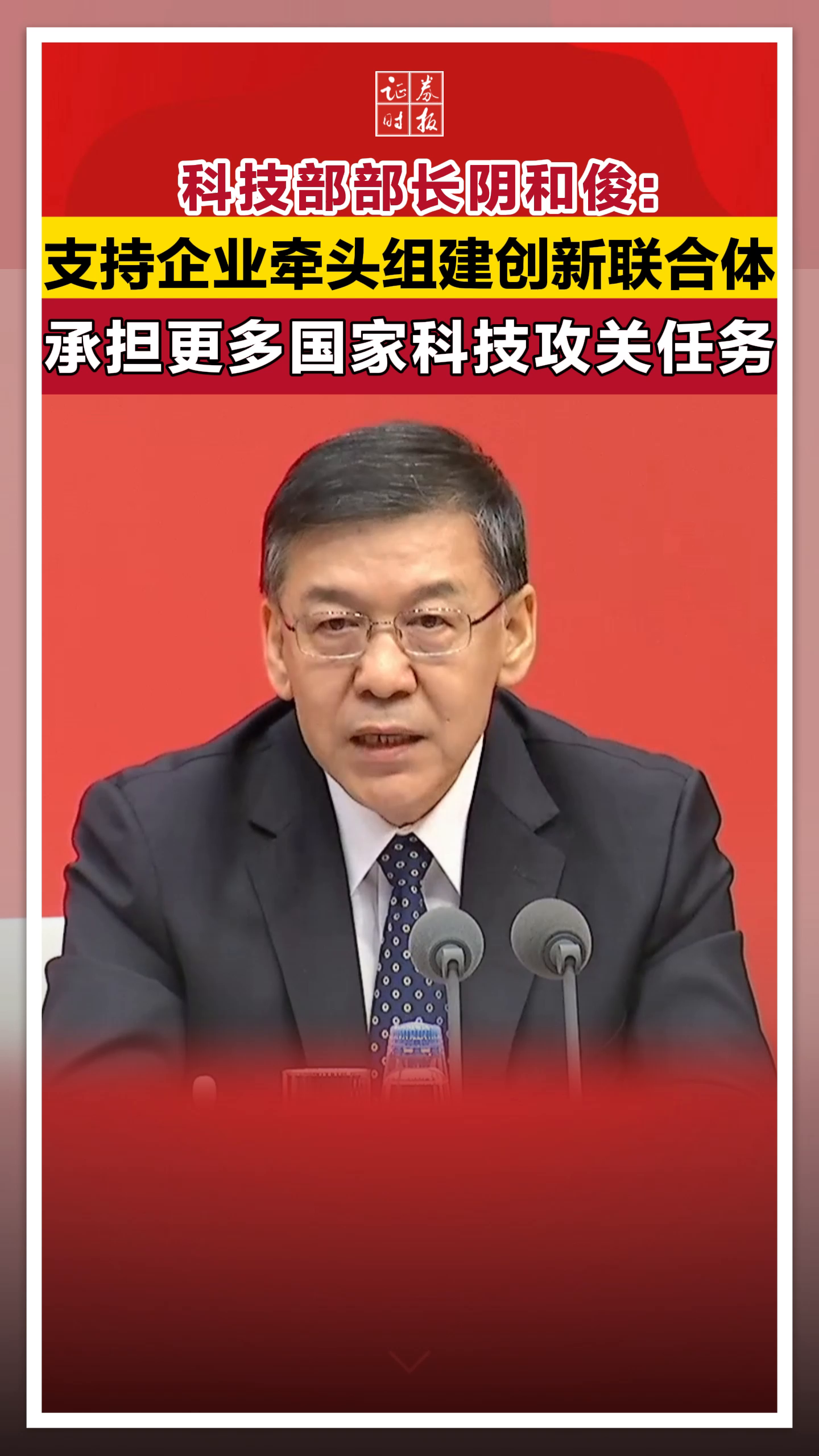 科技部部長陰和俊:支持企業牽頭組建創新聯合體,承擔更多國家科技攻關任務