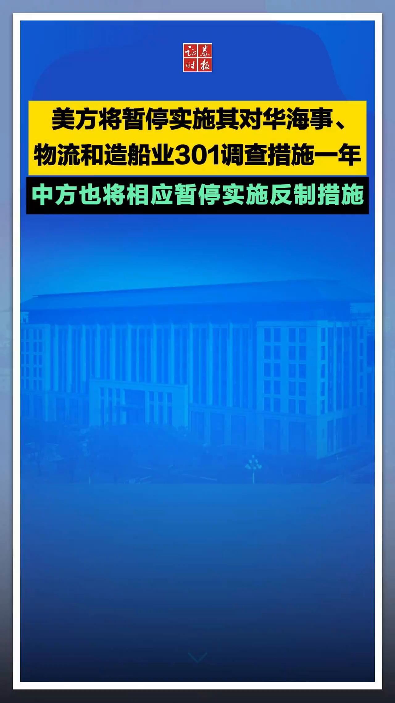 美方將暫停實(shí)施其對華海事、物流和造船業(yè)301調(diào)查措施一年,中方也將相應(yīng)暫停實(shí)施反制措施