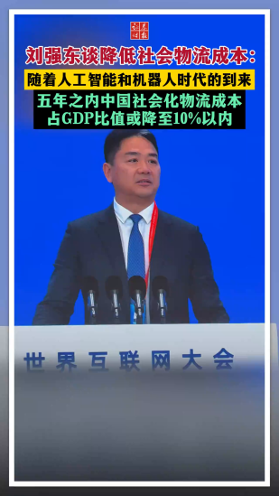 劉強東談降低社會物流成本:隨著人工智能和機器人...