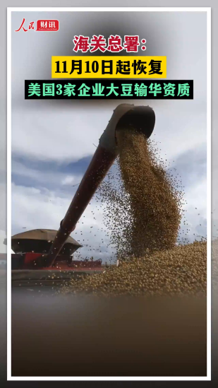 海關總署:11月10日起恢復美國3家企業大豆輸...