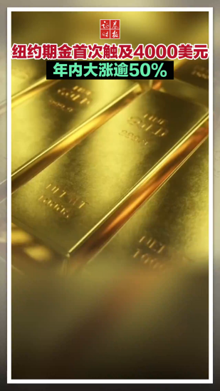紐約期金首次觸及4000美元 年內大漲逾50%